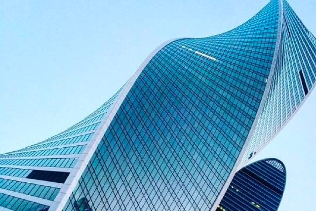 Москва-Сити, башня «Эволюция» — главный офис компании «Транснефть». Многофункциональный комплекс выполнен из холодногнутого стекла и является одной из наиболее закрученных башен-твистеров по углу поворота.