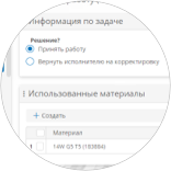 Задача становится обоснованием для списания с баланса товарно-материальных ценностей, что также помогает предупредить их недобросовестное использование. Система позволяет настроить автоматическое формирование задачи на склад для подготовки всего необходимого для работ — а линейному персоналу будет достаточно просто прийти и забрать расходники согласно заранее утвержденной задаче.